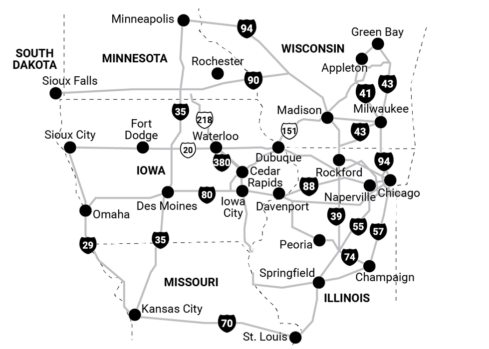 We know the upper Midwest because we're from the upper Midwest! Our dedicated drivers specialize in the area around Cedar Rapids, resulting in dependable deliveries time and time again.